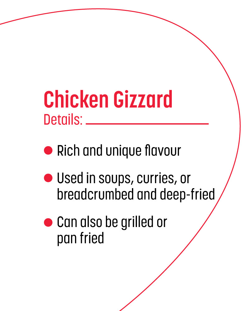 "Chicken gizzards stand out for their distinctive texture and intense flavor, making them a popular choice in diverse culinary traditions. Their firm, chewy consistency lends itself well to slow cooking methods like braising or stewing, allowing flavors to meld and tenderize. Whether marinated and grilled for added smokiness or simmered in rich broths for depth of flavor, chicken gizzards offer a unique culinary experience that appeals to adventurous eaters and traditional cooks alike."