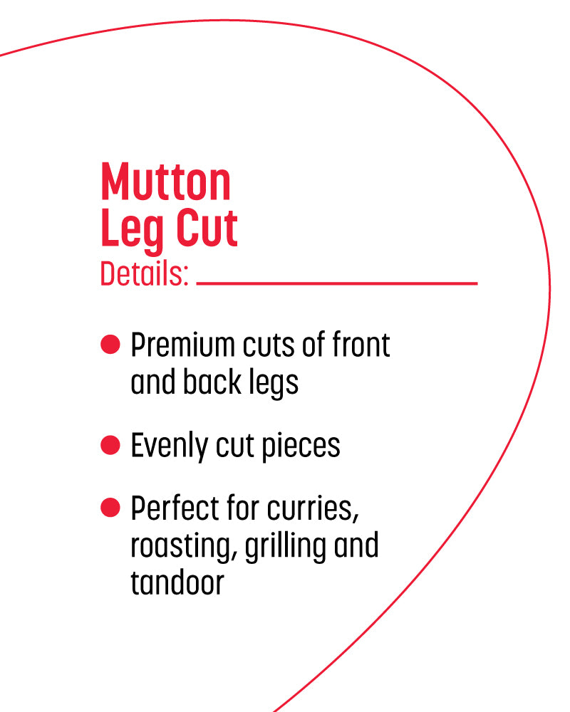 "Goat leg cut is a nutritious source of high-quality protein, essential for muscle growth and repair. It is rich in important nutrients such as iron, zinc, and B vitamins (including B12), which support immune function, energy metabolism, and nervous system health. The moderate fat content in goat leg adds flavor and juiciness to dishes while providing essential fatty acids."